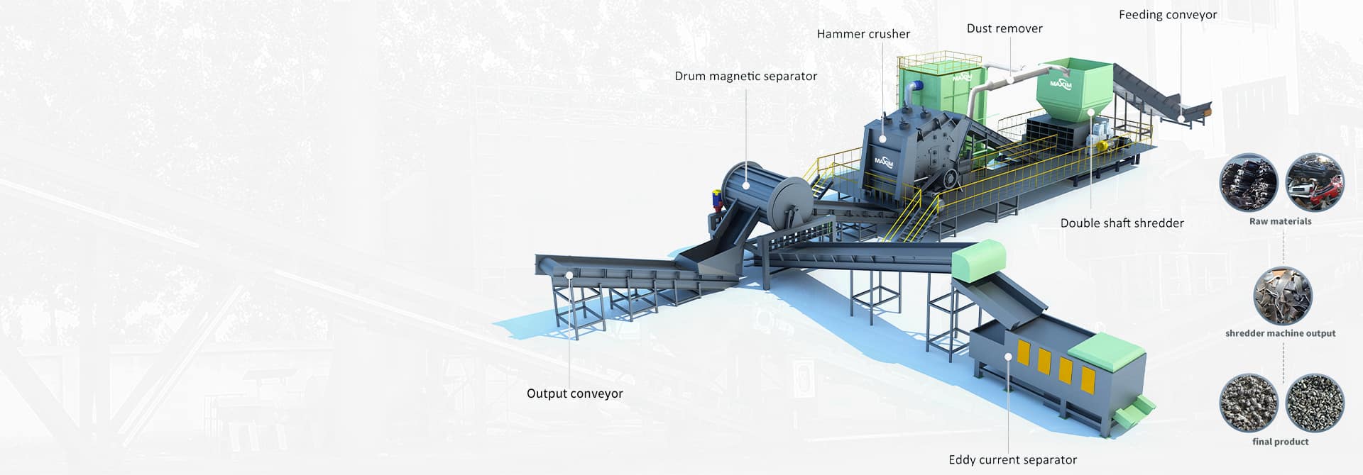 The metal shredder is mainly used for crushing scrap metal, increasing its bulk density for transportation and recycling. This equipment is widely used in shredding paint drums, diesel drums, thin iron sheets, car shells, metal briquettes, metal plate scraps, and other scrap metal materials