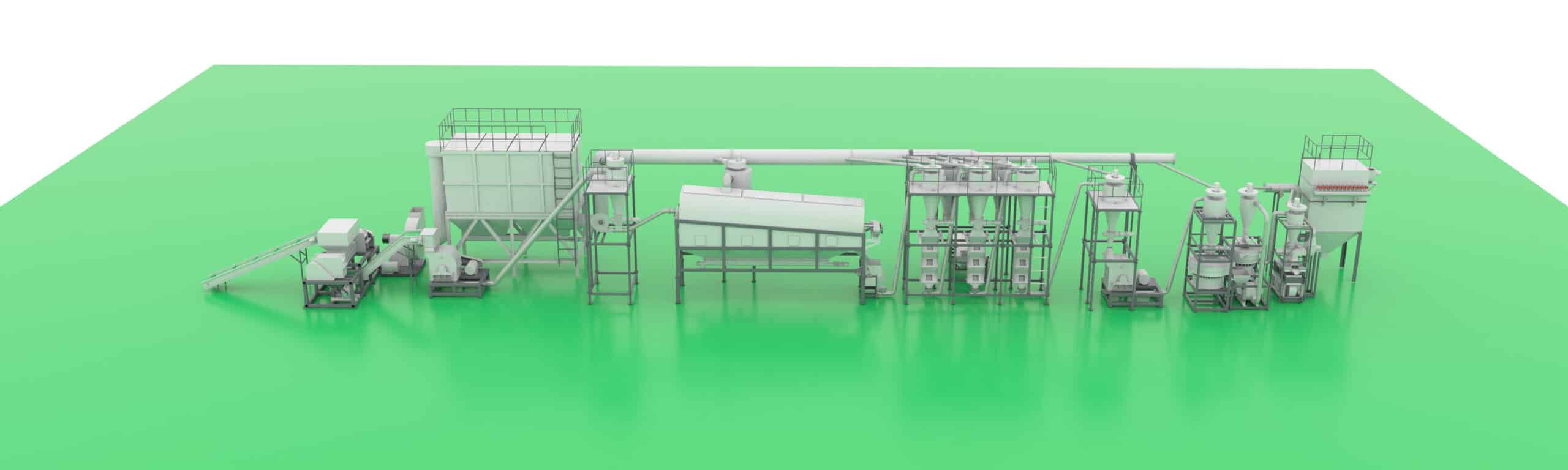 The comprehensive recycling and treatment equipment for waste lithium batteries has a high degree of automation and is easy to be industrialized. All recycling processes have been automated, and the recovery rate of valuable components of waste lithium batteries has reached more than 99%. The lithium battery treatment equipment separates the aluminum, copper and positive and negative electrode materials in the discarded positive and negative electrode sheets for recycling purposes. The aluminum content of positive and negative electrode materials is less than 3 ‰, and the grade of copper and aluminum is ≥ 96%. The production line consists of crushing system, sorting system, conveying system, air purification system, automatic control system, etc., and is equipped with a centralized dust removal system. The whole production line operates under negative pressure, and there is no dust overflow during the production process. The production environment is cleaner and more environmentally friendly, and the dust emission concentration meets the environmental requirements. It has not only significant environmental benefits, but also good economic benefits