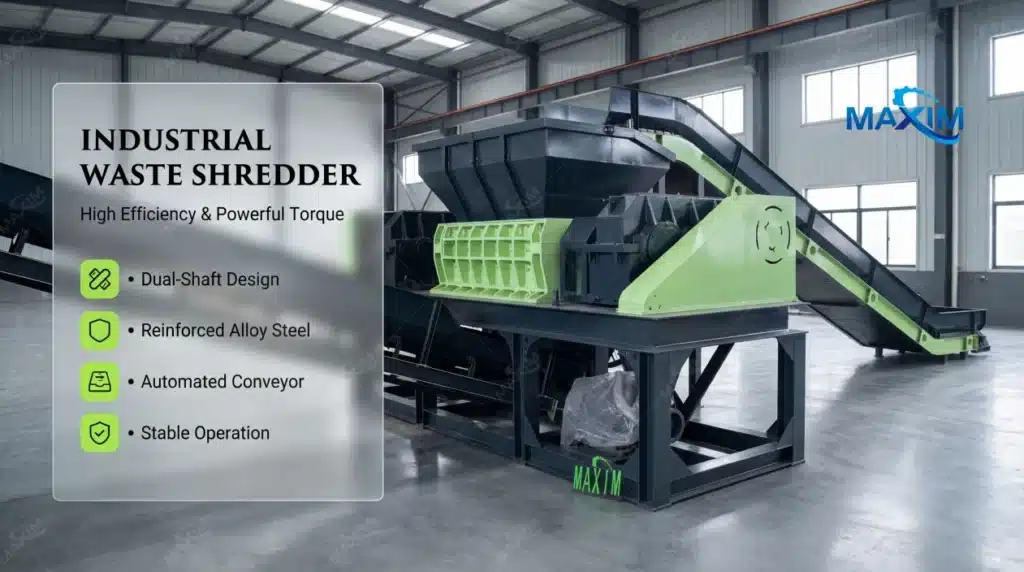 Capacity counts as a top point when picking a shredder for scrap work. Shredders built for industry usually handle from several tons each hour up to 50 tons per hour. Motor strength and chamber dimensions set this limit. Take the MAXIM machinery double-shaft shredder, for instance. It provides adaptable setups that work well for medium-sized jobs and big factory runs alike.