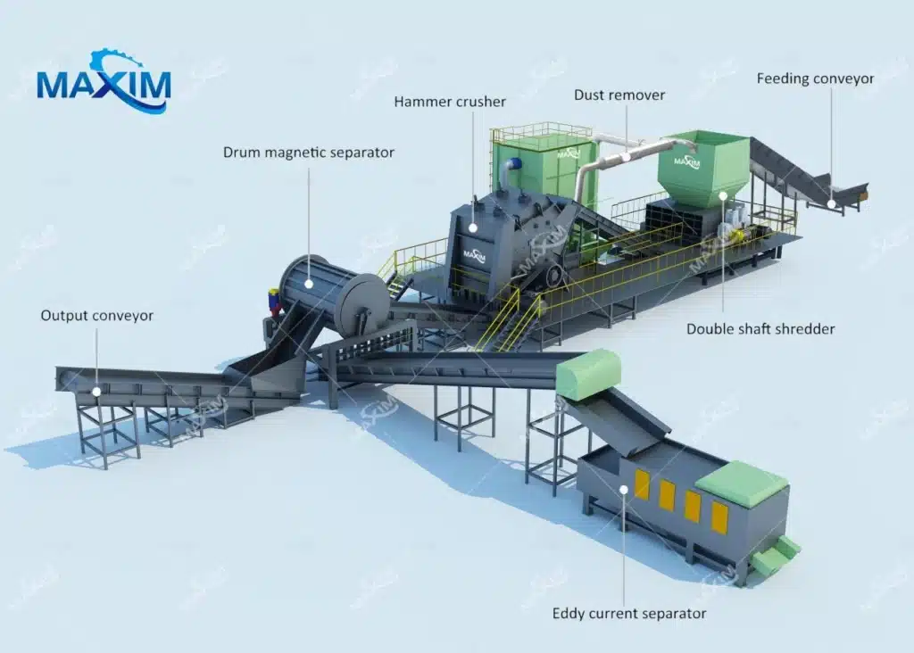 A full metal recycling setup does more than just shred. It often links up with: