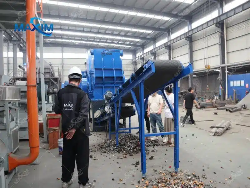 A: It breaks down bulk metal items into smaller fragments allowing easier separation via magnetic/eddy current methods integrated within MAXIM's systems.